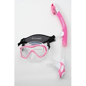Oceanic UltraDry Snorkel with Panoramic 3 Window Mask, Scuba Snorkeling Set