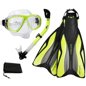 Oceanic V-Flex Fins Snorkeling Scuba Diving Mask Dry Snorkel Set